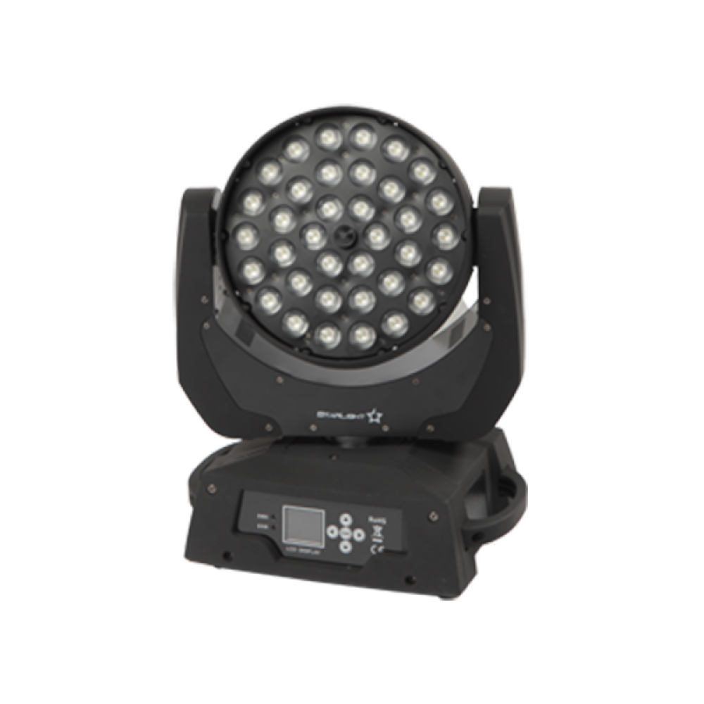 Вращающаяся голова Starlight MH3610ZW представляет собой профессиональное светодиодное оборудование фокусированного света с полным движением, предназначенное для сопровождения различных световых шоу и программ.