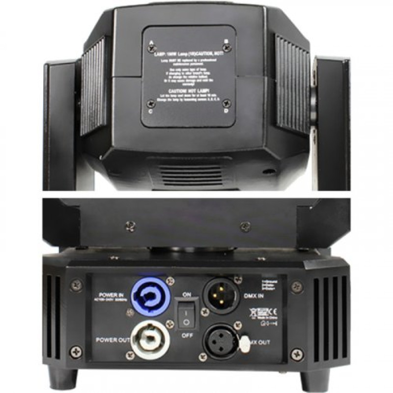 Он обеспечивает очень высокую светоотдачу с помощью специальной оптической системы с углом раскрытия луча 3,8°. Движение по PAN / TILT быстрое и плавное.