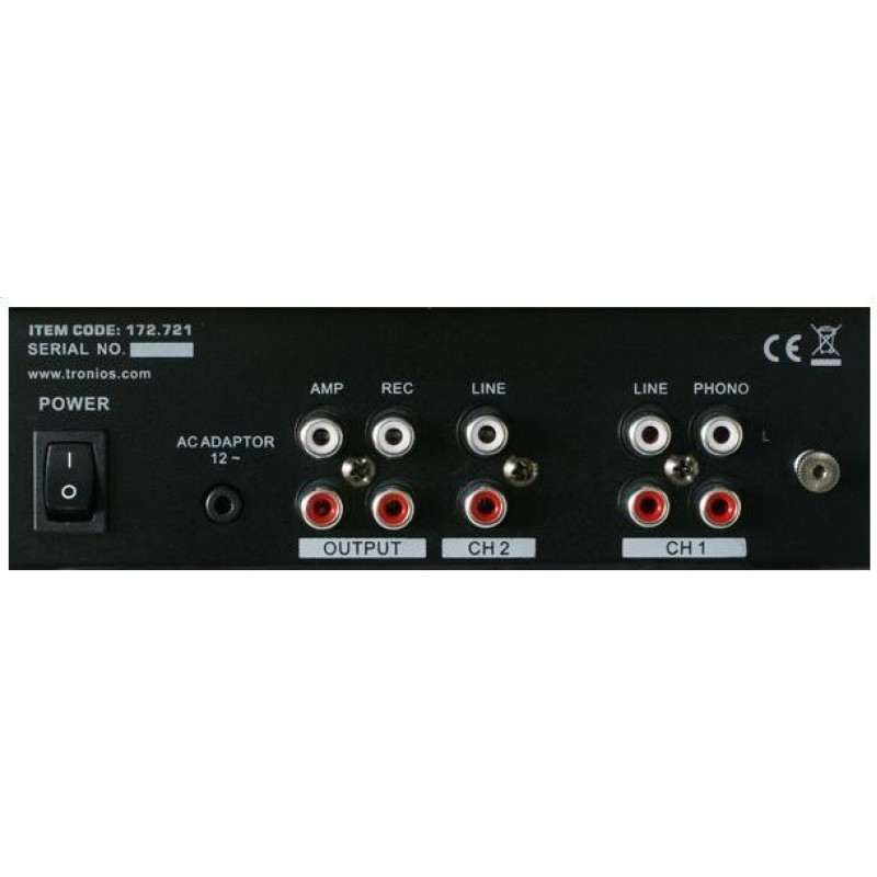 STM-3008 172.721 2-канальный микшер с USB портом позволяет напрямую подключать к встроенному MP3-плееру USB-накопитель с MP3-файлами. Есть линейный вход для подключения различных источников звука. Каждый канал имеет 2-полосный эквалайзер. Микрофонный канал оснащен как 2-полосным эквалайзером, так и переключателем Talkover и контролем уровня. Поставляется дополнительный кроссфейдер. При скромных габаритах микшер обладает широкими возможностями.
