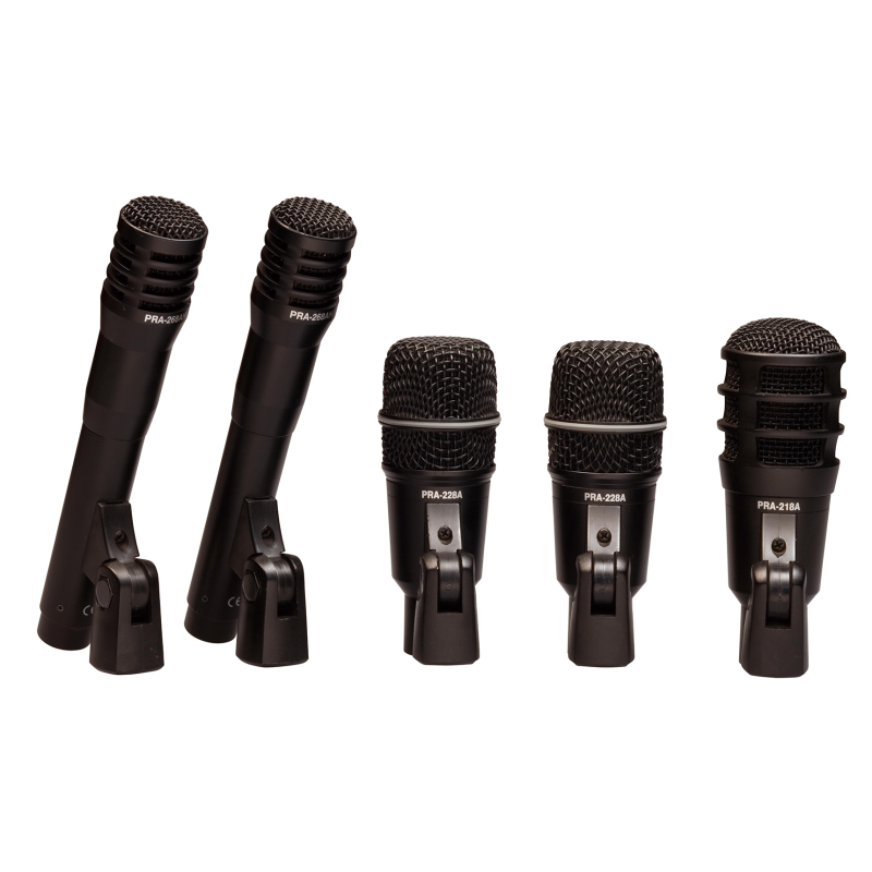 Они предназначены для использования во время живых выступлений, а также для репетиций. PRA-218A предназначен для большого барабана, два PRA-228A — для томов и еще два конденсаторных микрофона PRA-268A — для оверхедов. Кроме того, их можно использовать для снятия звука со струнных и духовых инструментов. Все микрофоны оснащены несъемными держателями для установки на стойки.