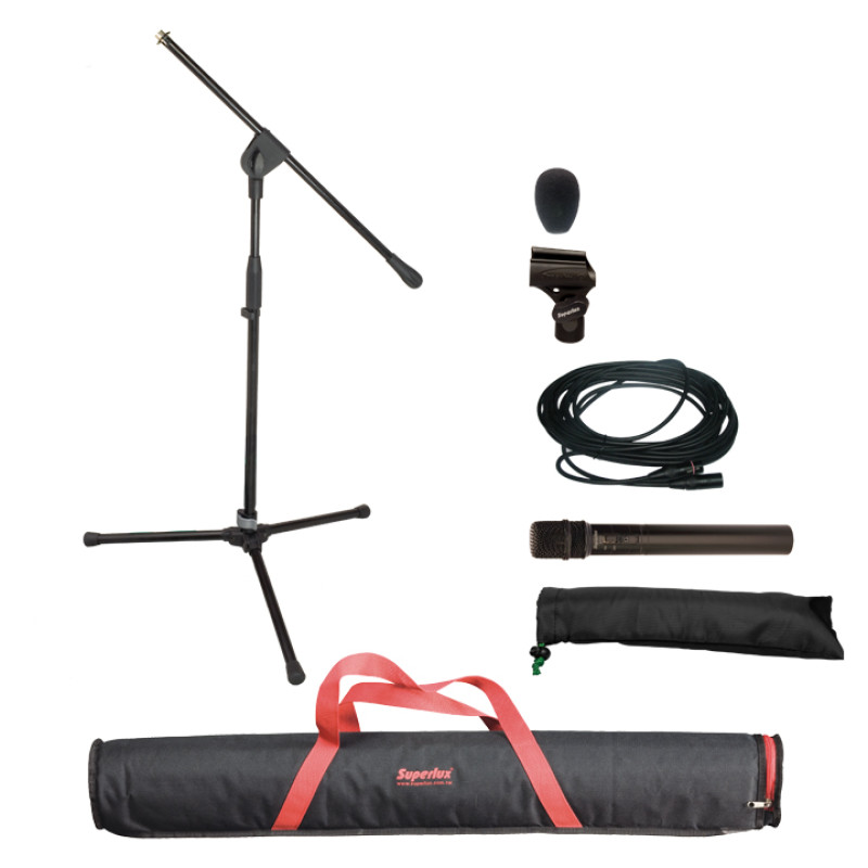 Superlux MSK124-X - Набор: микрофон E124D с чехлом и держателем, кабель XLR-XLR 6 м, стойка MS128 с чехлом.