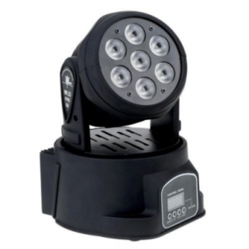 SZ-AUDIO MH-W712 вращающаяся голова wash.Модель SZ-AUDIO MH-W712 представляет собой вращающуюся голову типа Wash. Рассматриваемое устройство является гармоничным сочетанием высокого качества, отменной эргономичности, эффектности и приемлемой стоимости, доступной для множества пользователей. В первую очередь, необходимо отметить, что эта модель была оборудована семью высококачественными светодиодами RGBW Quad по 10W каждый. Само собой модель выполнена в лучших традициях компании SZ-AUDIO, поскольку в процессе ее проектировки и сборки использовались наиболее качественные, прочные и при этом самые современные материалы. Собственно говоря, именно за счет этого обстоятельства при правильных условиях эксплуатации вращающаяся голова, о которой идет речь, сможет прослужить своему владельцу весьма и весьма продолжительное время, не тревожа его техническими поломками или программными сбоями. Следует отметить еще и то, что модель оптимальна с точки зрения своих технических параметров. К примеру, диапазон ее рабочих напряжений находится в пределах 220-240В, частотный показатель составляет 50-60Гц, а угол раскрытия светового луча равняется 15/25 градусов. Помимо всего прочего в распоряжении пользователя есть несколько разнообразных режимов работы, в частности DMX 512, строб, активация звукового характера, режим автозапуска, а также Master/Slave Габаритные размеры головы составляют 225х225х270мм, а вес равняется всего 4,8 кг, что делает описываемое техническое устройство простым и удобным в обращении. Кроме того, такую небольшую голову будет легко транспортировать и хранить. Теперь любая вечеринка, дискотека, живое выступление или какое-либо другое праздничное мероприятие станет просто незабываемым вместе с SZ-AUDIO MH-W712.