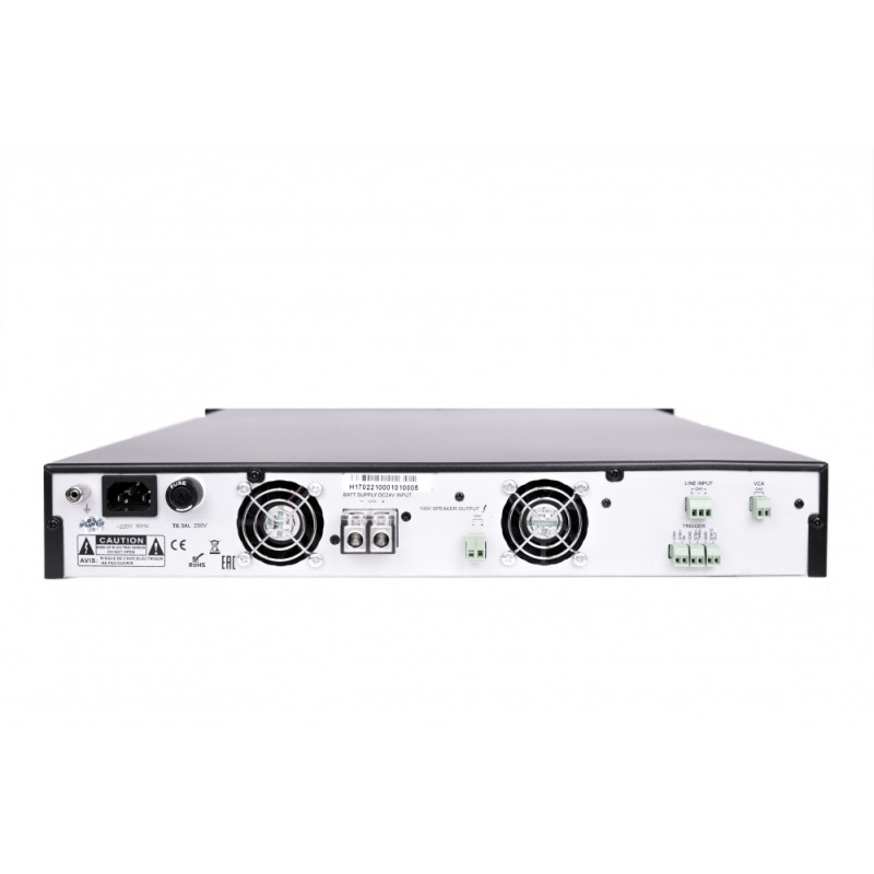 SZ-AUDIO T-1D240 представляет собой 1-канальный усилитель мощности класса D. Он оснащен функцией переключения мощности с технологией APFC, которая повышает его эффективность до 85%. Благодаря продуманной системе охлаждения, этот усилитель меньше нагревается даже при тяжелых условиях работы. Этот усилитель разработан как для настольного, так и напольного размещения. Его выходная мощность составляет 240 Вт. Коммутационные возможности устройства достаточно широки. Так, имеется выход 100 В, линейный вход с разъемом Phoenix, интерфейс RS232 управления громкостью и др. Усилитель оснащен специальной защитой от высокой температуры, перегрузки и замыканий.