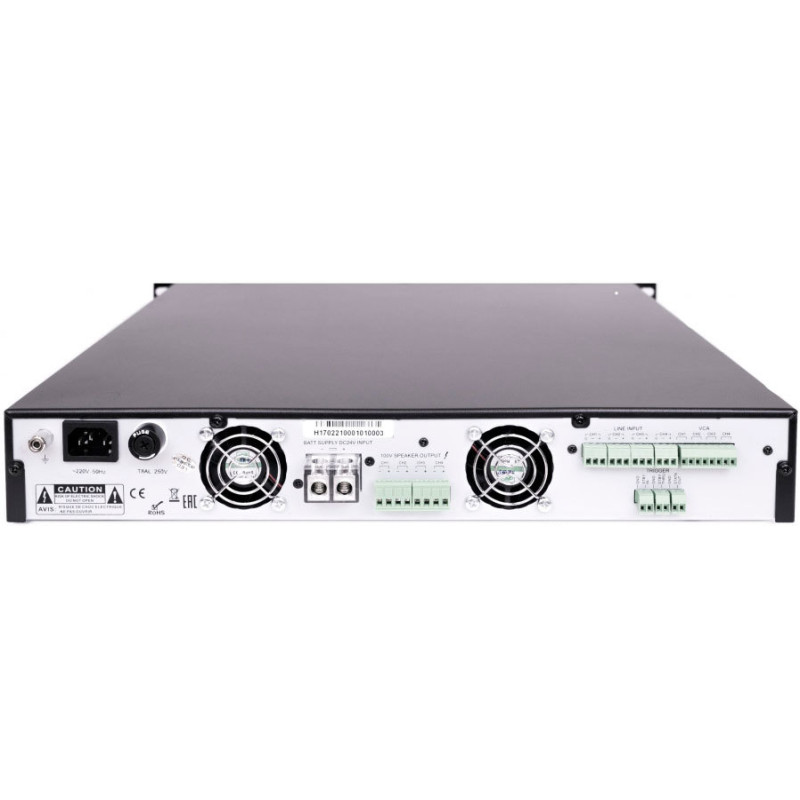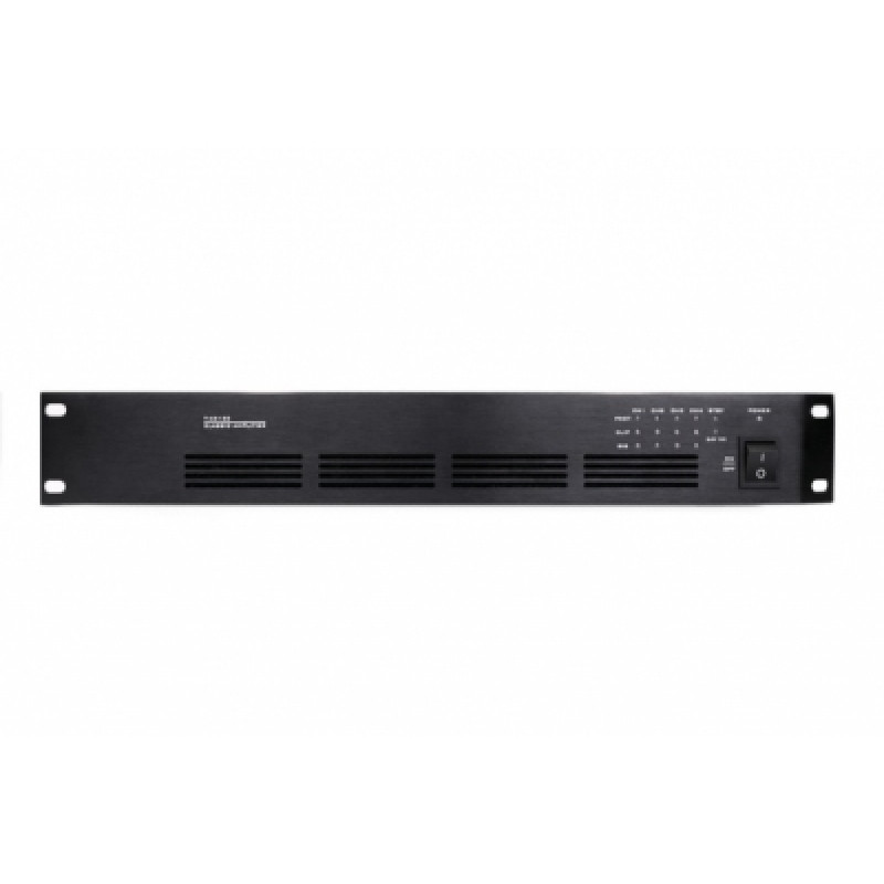 SZ-AUDIO T-4D120 высококачественный усилитель класса D со встроенным переключателем питания, который повышает работоспособность до 85%. Этот 19-дюймовый усилитель занимает 1.5 рэкового пространства в стойке. Выходная мощность устройства составляет 4*120W. На задней панели расположено 4 входных клемы и интерфейс управления громкостью. Также стоит отметить наличие встроенных активных фильтров.