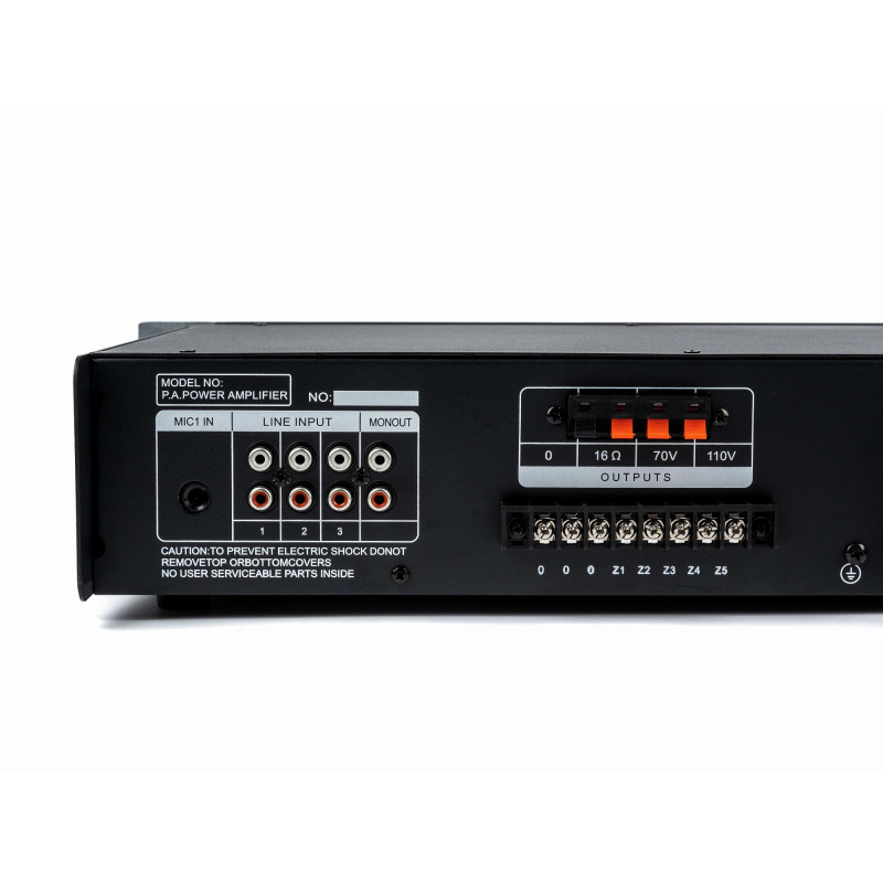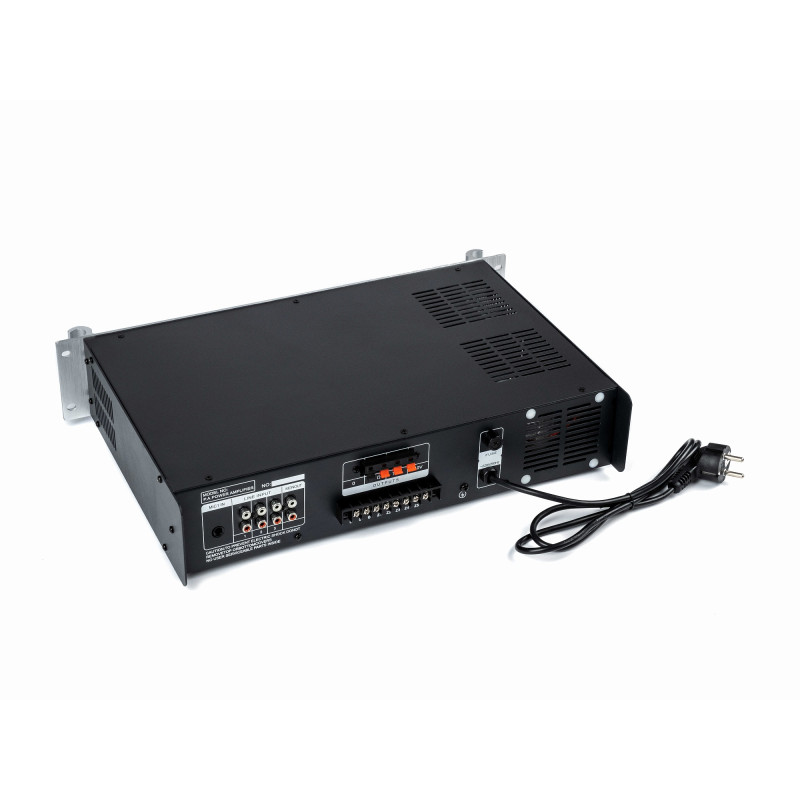 Усилитель выдает 60 Вт выходной мощности. На передней панели корпуса находится интерфейс управления с регуляторами и светодиодными индикаторами состояния. Кроме того, предусмотрен селектор на пять зон и встроенный MP3-проигрыватель.
