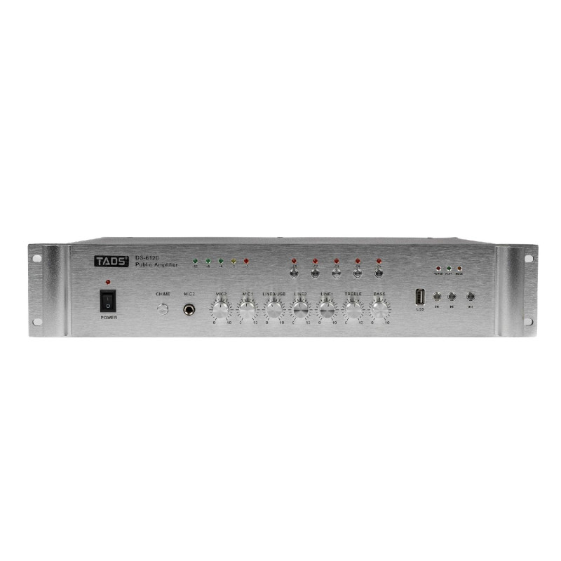 DS-6120 обеспечивает 120 Вт выходной мощности. На передней панели корпуса находятся ручки управления и индикаторы состояния, выполненные на светодиодах. Кроме того, имеется селектор на пять зон и MP3-проигрыватель.