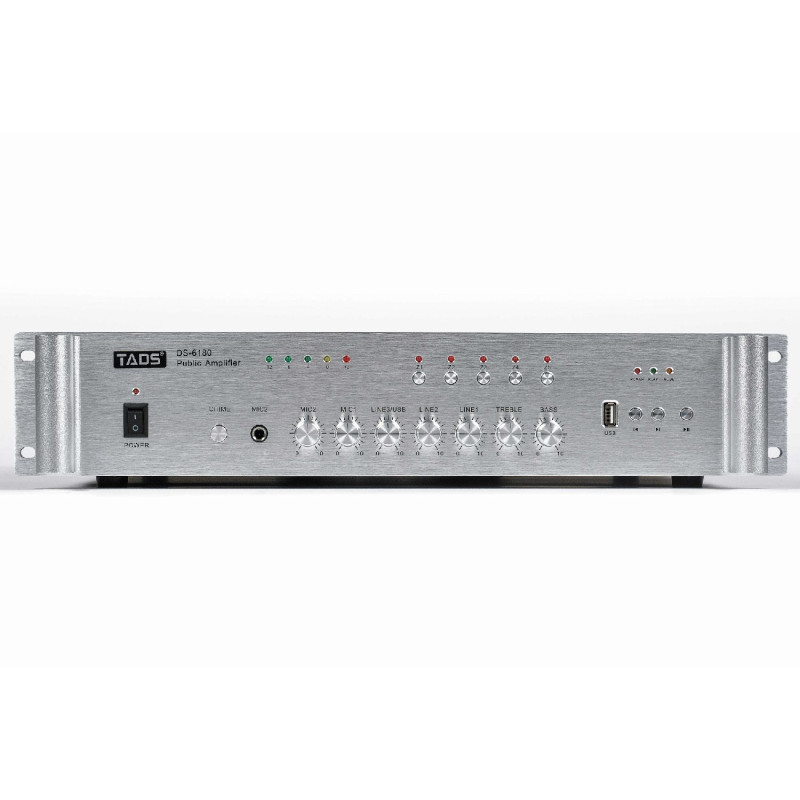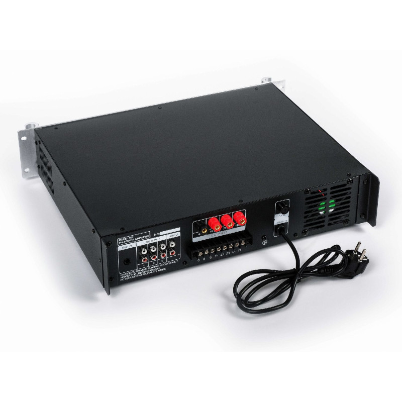 Усилитель мощности обеспечивает 180 Вт выходной мощности. Предусмотрен селектор на пять зон и встроенный MP3-проигрыватель. На передней панели находятся ручки управления и светодиодные индикаторы состояния.