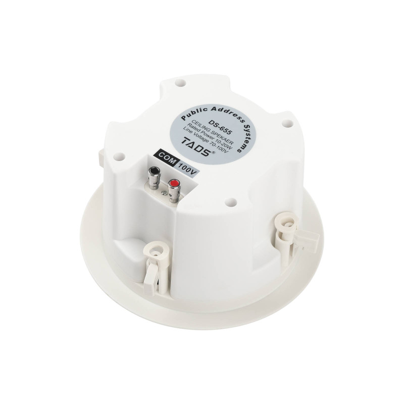 Конструкция позволяет интегрировать динамик в потолок, экономя место и сохраняя чистый и минималистичный внешний вид.