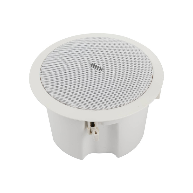 Конструкция позволяет интегрировать динамик в потолок, экономя место и сохраняя чистый и минималистичный внешний вид.
