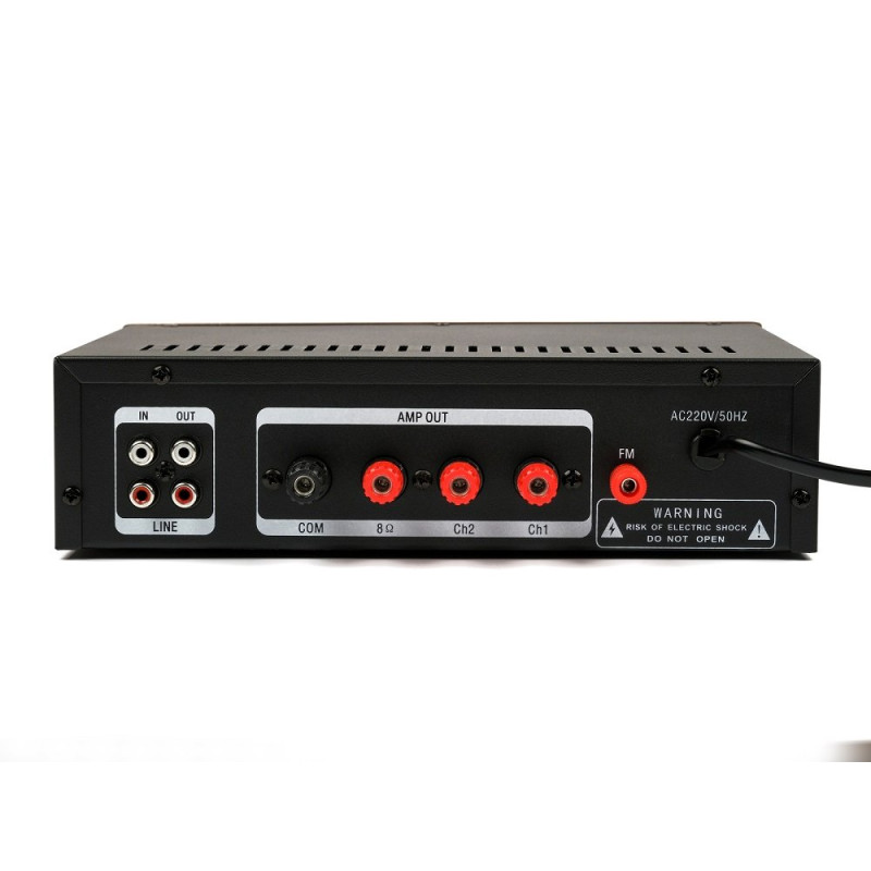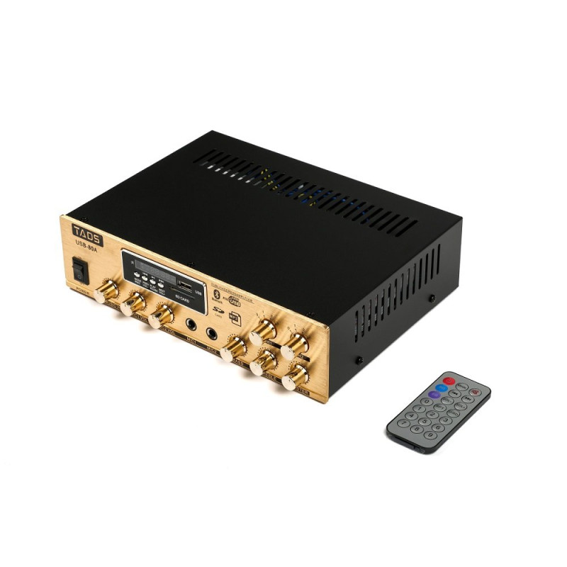 Усилитель заключен в прочный металлический корпус. Максимальная мощность модели составляет 80 Вт, а показатель сопротивления на выходе варьируется в широком диапазоне 4-16 Ом. Для максимально комфортной настройки и работы в конструкции усилителя предусмотрены слот для карт SD, разъем USB, а также встроенные радиоприемник и плеер.
