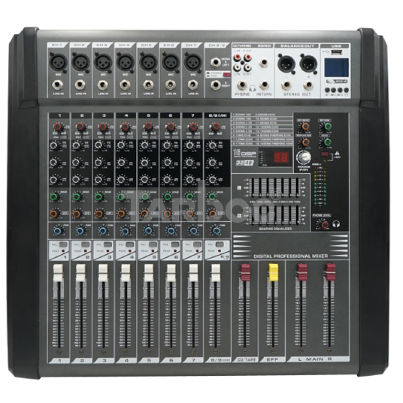 - Модель:Микшерный пульт (с усилителем), 8-каналов