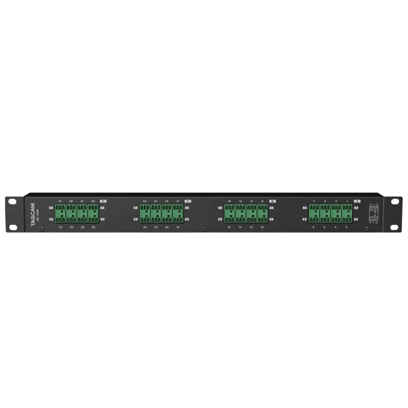 Клеммы Euroblock на BO-32DE могут использоваться как для ввода, так и для вывода, поэтому вы можете использовать все клеммы как входы, все клеммы как выходы или использовать каждую группу из восьми каналов как входы или выходы. Это означает, что вы можете использовать один BO-32DE для ввода 16 каналов в Tascam ML-16D и использовать оставшиеся 16 терминалов в качестве выходов. Вы также можете назначить 24 канала в качестве входов для ML-32D и восемь каналов в качестве выходов, это полностью зависит от вас.