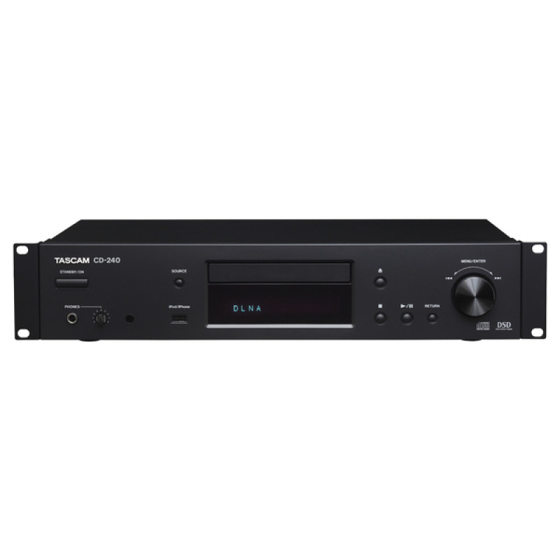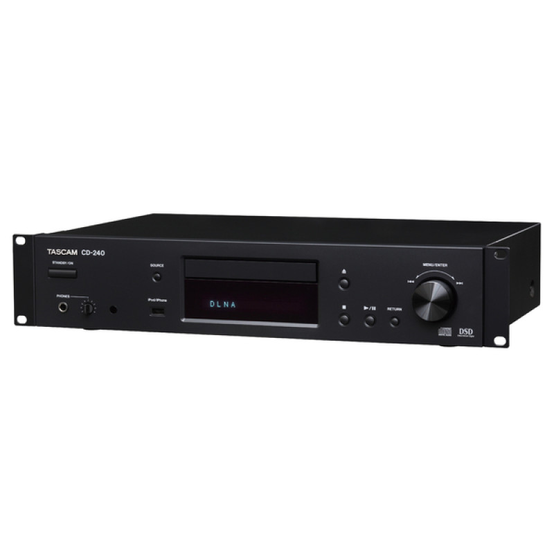 TASCAM CD-240 оснащен CD-приводом, который может работать как с компакт-дисками формата CDDA, так и с дисками, содержащими MP3-файлы с битрейтом до 320 Кб/с и WAV-файлы. Данные файлы поддерживаются с частотой дискретизации до 48 кГц. Возможно отображение информации формата CD-text и ID3-тэгов: плеер обладает многострочным графическим ЖК-дисплеем, который может показывать необходимую информацию.