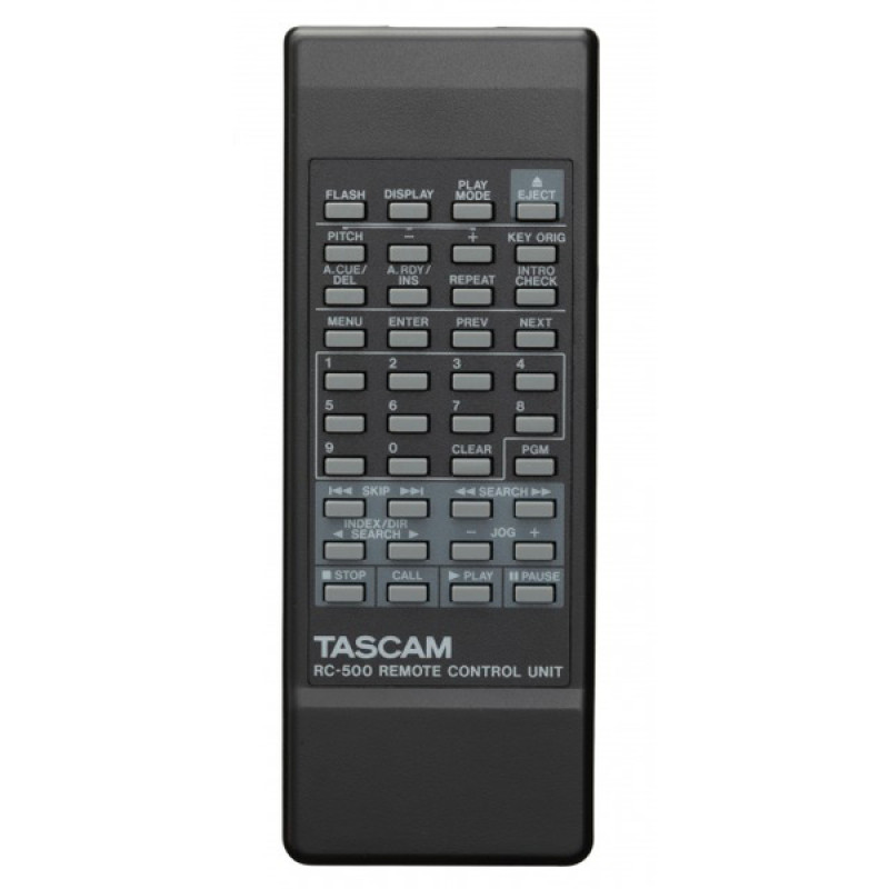 Управление TASCAM CD-500 осуществляется с использованием разъема RS-232 на задней панели, который позволяет подключить компьютер и управлять проигрывателем через него. Возможно удаленное управление устройством с помощью напольного переключателя. Также можно соединять между собой несколько плееров TASCAM CD-500 и CD-500B для создания сложной структуры последовательного воспроизведения дисков (что-то подобное CD-чейнджеру из множества устройств). Наконец, плеер комплектуется многофункциональным пультом ДУ.