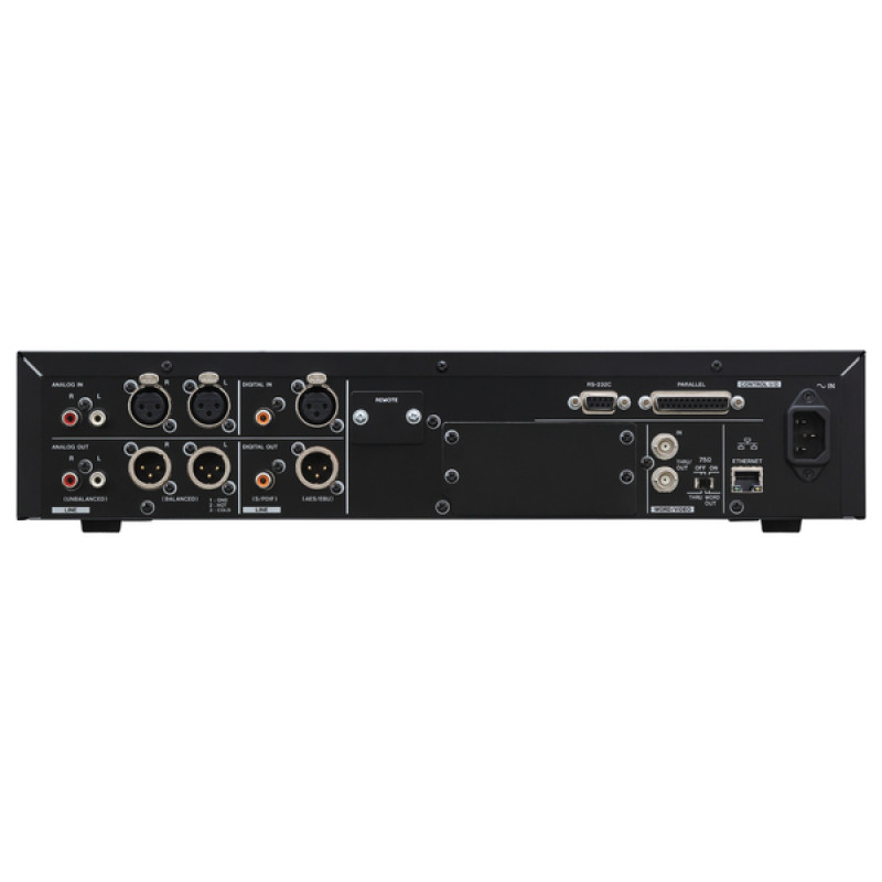 - управление: последовательный и параллельный порты (D-SUB 9-pin и 25-pin соответственно), тайм-код, Word/Video sync, Ethernet, USB.