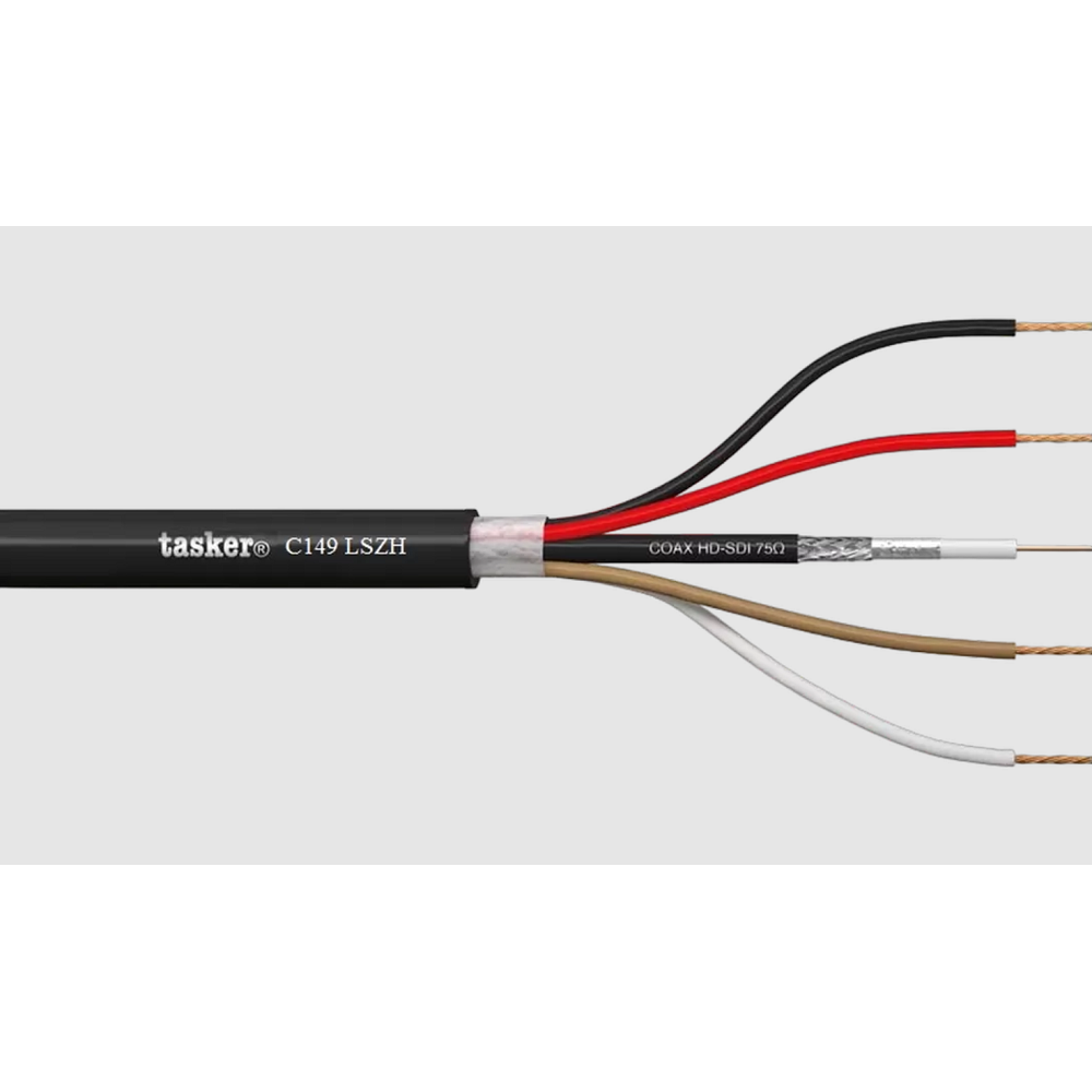 TASKER C149 L.S.Z.H. — это высококлассный профессиональный мультикоаксиальный кабель, предназначенный для передачи цифровых видеосигналов HD-SDI и управляющих сигналов с одновременным питанием подключенного оборудования.