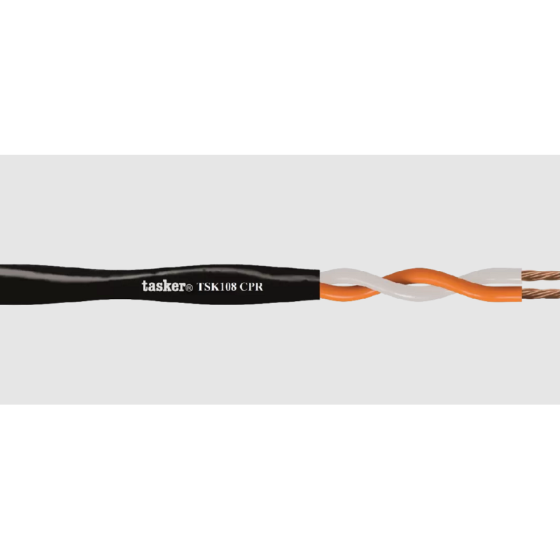 TASKER TSK108 - это высококачественный круглый аудиокабель имеющий внешнюю оболочку из гибкого огнестойкого ПВХ (FirestoP), который используется в помещениях/конструкциях для стационарной прокладки внутри кабель-каналов, труб, подвесных потолков, Rack-шкафов и т.п., с целью подключения пассивных акустических систем различного назначения. Отвечает стандартам пожарной безопасности CPR.