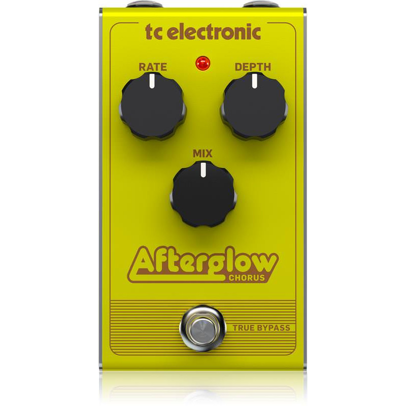 TC electronic AFTERGLOW CHORUS – гитарная педаль, эффект хорус, модель в винтажном стиле с легендарной полностью аналоговой электронной схемой BBD (Bucket Brigade Delay). Создатели этой педали ориентировались на тембры модуляции, характерные для золотой эпохи рок-н-ролла. С помощью AFTERGLOW CHORUS можно получить разнообразие звуков, отправившись в настоящее путешествие во времени: от динамика Лесли, характерного для 60-х и 70-х до гранжа. Звучание, получаемое при использовании педали AFTERGLOW CHORUS, – богатое и насыщенное, обладающее объемом, оставляющим ощущение настоящей трехмерности. Управление осуществляется с помощью трех регуляторов: Rate (настраивает скорость модуляции), Depth (настраивает интенсивность эффекта) и Mix (регулирует соотношение исходного сигнала и обработанного). Режим True Bypass гарантирует, что эффект не влияет на звук инструмента, когда не используется. Педаль заключена в прочный цельнометаллический корпус «Built-like-a-tank» яркого желтого цвета, способный выдержать не самое бережное обращение в турах. Электропитание – от батарейки «Крона» 9 вольт или сетевого адаптера TC Electronic Powerplug 9 (приобретается отдельно).