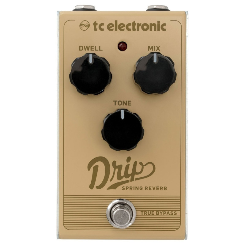 TC ELECTRONIC DRIP SPRING REVERB Педаль эффектов для электрогитары, эффект ревербератор, True Bypass, управление Dwell, Mix, Tone, металлический корпус, питание от блока питания 9В или от батареи. TC Electronic Drip Spring Reverb поставляет знаковый и аутентичный spring ревербератор, чтобы вернуть ваш звук в классические дни реверберации.Его 3-регуляторная схема гарантирует, что любой музыкант может настроить идеальный уровень реверберации, чтобы улучшить тон с большим количеством глубины и отличительным характером.Гнезда сверху педали предназначены для максимизации пространства в педалборде, в то время как истинный байпас сохраняет исходный сигнал, когда педаль выключена. Педаль имеет прочный металлический корпус.TC Electronic Drip Spring Reverb – идеальный компаньон для любого педалборда.