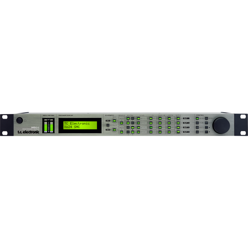 Итак, TC Electronic XO24 – процессор управления акустическими системами с двумя входами и четырьмя выходами. Входы двух типов: балансные аналоговые на разъемах XLR и цифровой S/PDIF (44,1/48 кГц) на RCA Jack. Для линкования нескольких процессоров по входному цифровому сигналу есть дополнительный сквозной разъем.