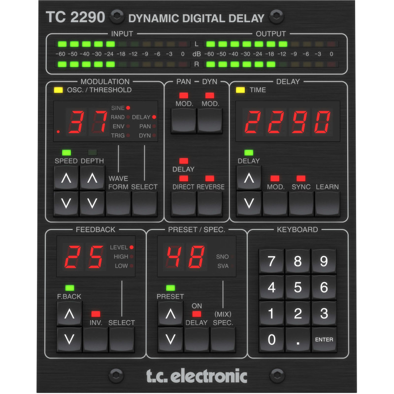 TC electronic TC2290-DT представляет собой прорывной универсальный динамический плагин для DAW, воспроизводящий с абсолютной достоверностью звучание легендарного дилэя TC2290. Плагин оснащен специальным подключаемым к компьютеру по USB настольным интерфейсом с полной интеграцией в DAW и мощными вдохновляющими пресетами, делающими треки особенными и неповторимыми. Плагин может создать практически любой тип дилэя и оживить треки чистейшими повторами, сложными ритмами задержек и сверх выразительными модуляционными саундскейпами. TC Electronic TC2290-DT музыкально реагирует на уровень входного сигнала и повторы изменяются в соответствии с сыгранной музыкой, никогда не заглушая ее и не мешая ее органичной природе. Многие знаменитые артисты и группы использовали оригинальный дилэй 2290, а многие используют его и сейчас. Импортированные прямо с рэков великих артистов подписные пресеты TC Electronic TC2290-DT обеспечивают аутентичное воссоздание настроек дилэя, определявших историю музыки. Высококачественный тактильный настольный интерфейс, повторяющий вид и ощущения TC2290 рэкового дилэя, оснащен индикаторами входного и выходного сигнала, а также индикаторами всех основных определяющий тон параметров, таких как время задержки, уровень обратной связи, модуляция, настройки микса, пресеты и многих других. При размерах 43 x 109 x 135 мм вес интерфейса составляет 400 г. Плагин не требует при установке дополнительных драйверов и доступен в форматах VST2.4, VST3, AU, AAX. Цифровые звуковые рабочие станции (DAW) Pro Tools, Logic Pro, Cubase, Ableton Live, Studio One, Nuendo, Reaper, Reason, Garage Band были протестированы на совместимость с плагином.
