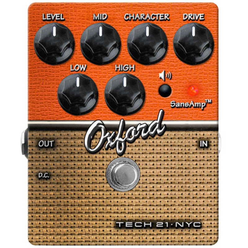 Педаль Oxford воссоздает звучание в стиле усилителей Orange, звучание от лондонского глэма 70-х до современного стоунер-рока. Встроенная эмуляция динамиков настроена индивидуально типа Vintage 30 4x12”. Отличительной особенностью педали является регулировка Character, которая дает возможность настроить тональный диапазон в широких пределах. Кроме того, педаль SansAmp Character Oxford имеет 100% аналоговую схему, 3-полосный активный эквалайзер, контроль уровня перегруза и громкости.