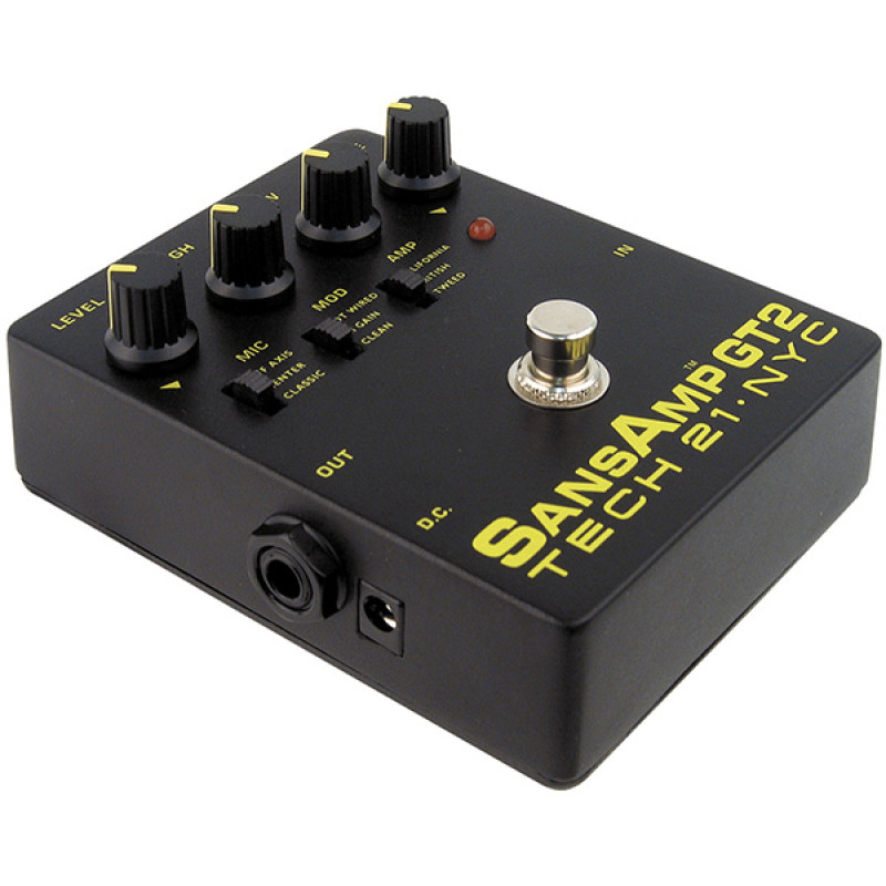 GT2 – самая популярная педаль из серии SansAmp. С ней можно легко достигнуть нужного звучания, как похожего на известные ламповые усилители, так и своего собственного. Имеется возможность выбрать три типа звучания (TWEED, BRITISH, CALIFORNIA), а также их модификации и эмуляцию конфигурации кабинета с микрофоном. Причем все это можно комбинировать как угодно, в любых сочетаниях. GT2, как и все остальные продукты SansAmp, хорошо подходит для прямого подключения к микшерным пультам и системам записи звука.