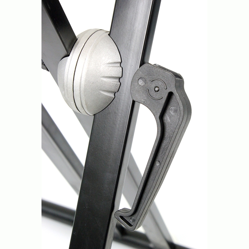 Данная стойка представляет собой усиленный вариант Х-образных стоек. Она гораздо устойчивее за счет двойной рамы, но, соответственно, тяжелее и несколько дороже. Зато может выдержать больший вес инструмента. Имеет удобный замок фиксации