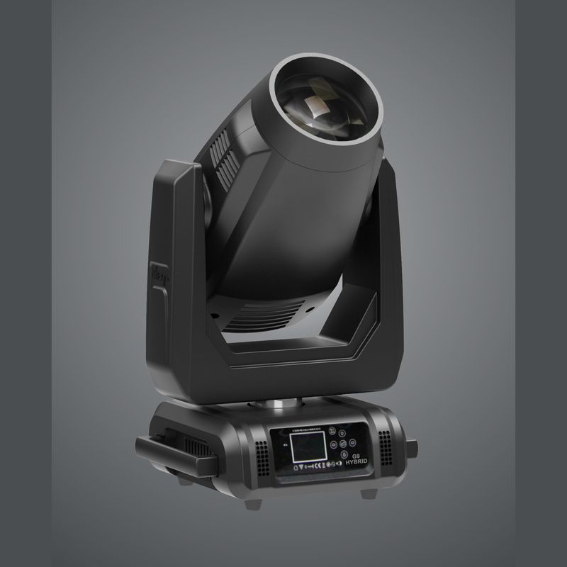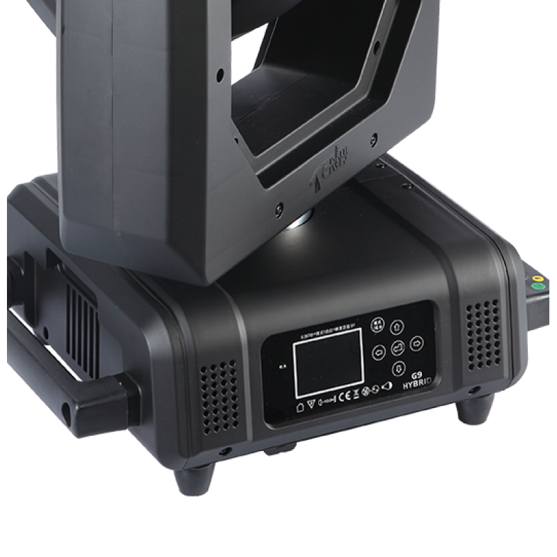 Terbly G9 HYBRID светодиодная голова это мощный заливочный динамический прибор с источником света:Philips Platinum 14R, 280W. Управление осуществляется в режимах DMX512 (19/17/26 канала), авто, саунд. На борту встроенный электронный Zoom позволяющий раскрывать угол луча 2°-14°(Beam Mode), 3°-23°(Spot Mode).Диммер: 0-100% строб: 0-25Hz, вращение по Pan:540° и Tilt: 270°. Предназначен для профессионального применения на концертных сценах, в театрах, дворцах культуры, прокате.Он очень яркий и супер быстрый с острым параллельным лучем, который с легкостью прорезает пространство и не потеряется на фоне видео эффектов. Он способен проецировать статичное или вращающееся стеклянное гобо для создания пространственных и поверхностных эффектов, а также проекционных планов. Добавьте сюда вращающиеся в обоих направлениях линейную или округлую призмы создающие объемные эффекты на любых декорациях.Применив фрос-фильтр используйте любой из 13-ти насыщенных цветов для равномерной заливки.Оптическая группа вместе с вращающимися гобо равномерно распределяет свет и позволяет добиться оптимального качества проекции. Регулируемый фрост-эффект мгновенно преобразует луч в мощный пучок заливающего света. Источником служит новая 280-ваттная газоразрядная лампа Philips Platinum 14R, 280Вт, благодаря которой прибор способен повысить зрелищность любого светового шоу.