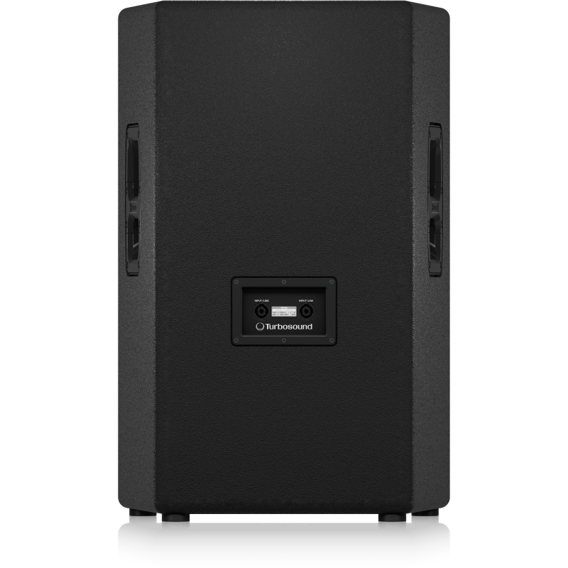 Фронтальная часть Turbosound Performer TPX152 защищена с помощью перфорированной, акустически прозрачной стальной сетки. По бокам находятся ручки для переноски АС. Встроены 2 стакана 35 мм для размещения на стойке.