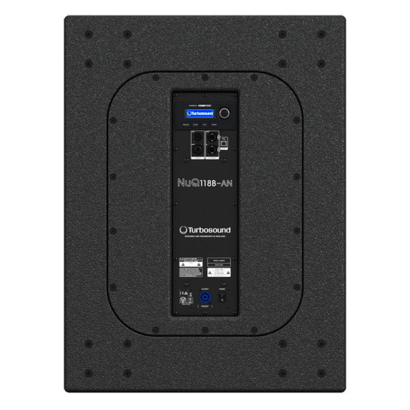 Басовик подключен к усилителю класса D, разработанному компанией Klark Teknik, который развивает мощность 3000 Вт. Для управления Turbosound NuQ118B-AN используется современный DSP (также выпущенный Klark Teknik), который обеспечивает точную динамическую эквализацию звучания сабвуфера, а также позволяет настраивать другие его параметры.