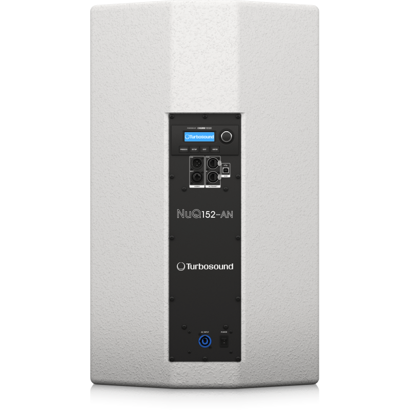 На фронтальной панели Turbosound NuQ152-AN закреплена прочная стальная перфорированная решётка с порошковым покрытием, а в корпус интегрированы монтажные точки для стационарной установки. Громкоговоритель также оснащен стаканом 35 мм для установки устройства под углом, либо на монтажной стойке. Подключение к источнику питания осуществляется при помощи разъемов Neutrik powerCON.