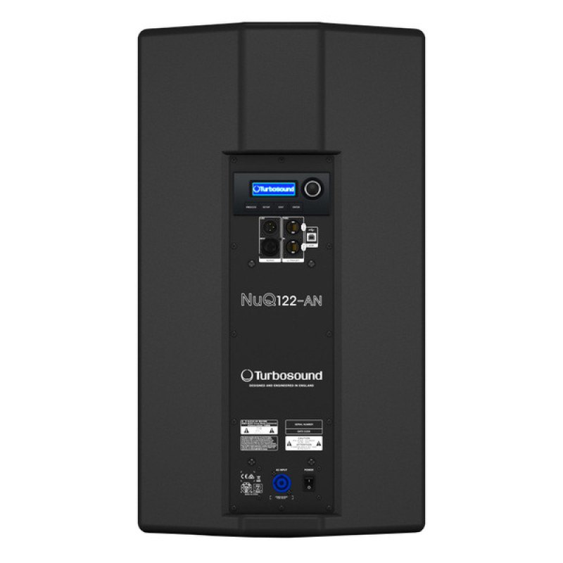 Кабинет Turbosound NuQ122-AN выполнен из берёзовой фанеры 15 мм, содержит 12-дюймовый НЧ-динамик из углеродного волокна и неодимовый компрессионный ВЧ-драйвер 1” с алюминиевым куполом. Волновод с низким уровнем искажений обеспечивает дисперсию в 70х70 градусов. Максимальная мощность составляет 2500 Ватт, при этом обеспечивается звуковое давление в 131 дБ. На тыловой панели расположен основной балансный комбинированный вход на XLR/TRS. Есть и выход XLR-M для посыла копии сигнала источника на другие громкоговорители с использованием обычного кабеля XLR: вы можете также можете управлять ими с помощью большой ручки и четырех кнопок под многофункциональным графическим ЖК-дисплеем. С помощью данного пользовательского интерфейса вы можете контролировать уровни звука, настраивать эквалайзер и активировать пресеты частотной