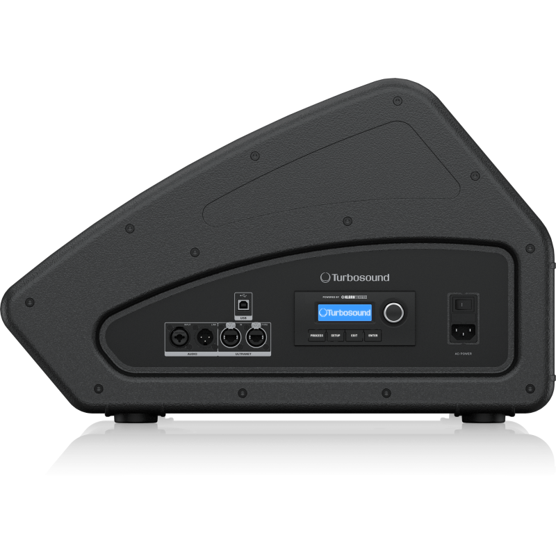 Turbosound TFX – это новая серия концертных сценических мониоров среднего ценового уровня, в которую входят две активных модели TFX122M-AN и TFX152M-AN с 12” и 15” динамиком. В мониторах используются оригинальные НЧ вуферы с катушкой уменьшенной массы, а также высокоэффективные драйверы с титановой диафрагмой диаметром 1”, работающие в рупоре с раскрытием 60° на 40°..Для более качественного звучания вблизи монитора, в серии TFX, как и в более старшей TFM, используется коаксиальное расположение НЧ динамика и ВЧ рупора. Встроенные усилители Klark-Teknik новых мониторов способны развить выходную мощность до 1100 Вт в пике, процессоры обеспечивают функции кроссовера, эквалайзера и задержки. Звуковой сигнал может поступать как в аналоговом виде, так и через интерфейс ULTRANET по Cat-5 кабелю от микшеров или стейджбоксов Behringer и Midas. Регулировка параметров доступна через панель управления c LCD-дисплеем, или через USB-интерфейс с компьютера.