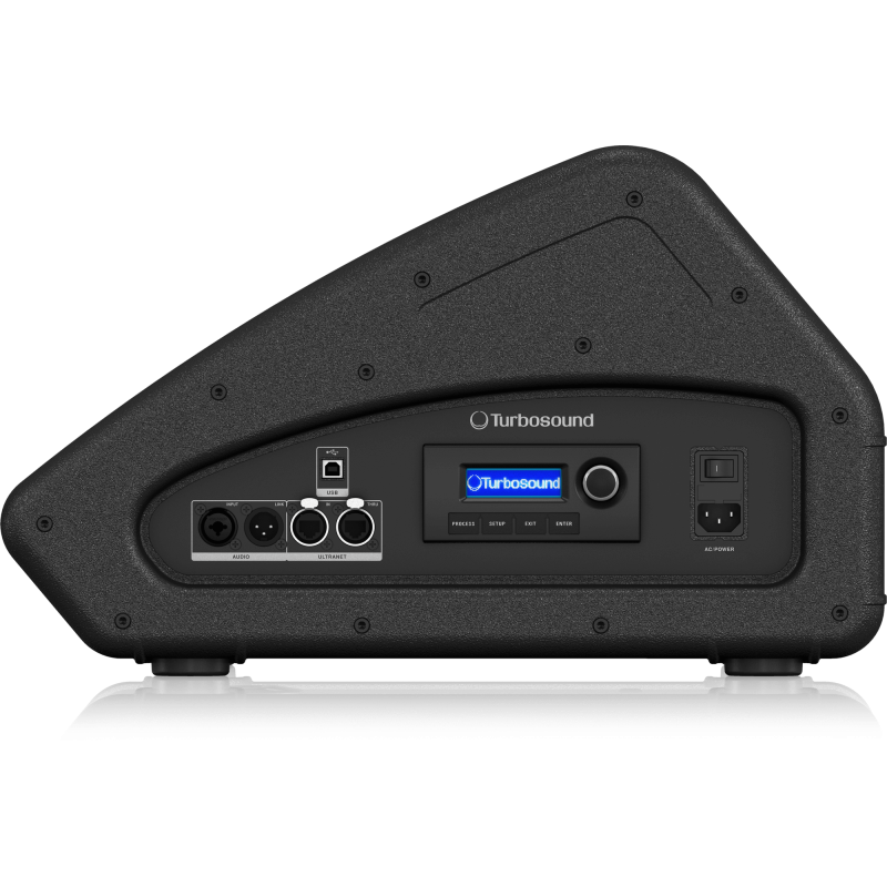 Также активный сценический монитор Turbosound FLASHLINE MONITORS TFX122M-AN имеет встроенный DSP производства KLARK TEKNIK. Он предоставляет доступ к ряду полезных в работе инструментов: лимитер, двухполосный эквалайзер, параметрический эквалайзер, настраиваемую задержку, 20 пресетов (19 пользовательских) и кроссовер. USB-порт используется для загрузки с turbosound.com программного обеспечения. Наконец, два порта RJ-45 на корпусе предназначены для управления АС по сети ULTRANET с помощью обычных Ethernet-кабелей RJ-45. С помощью данной сети между совместимыми устройствами могут передаваться аудиоданные: до 16 независимых каналов с параметрами 24 бит/48 кГц.
