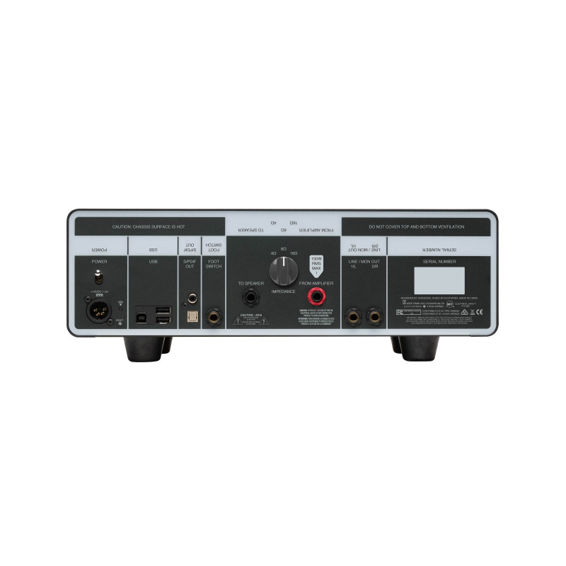 Universal Audio OX Amp Top Boxпредставляет собой универсальную гитарную систему премиального класса для ламповых усилителей, которая может выполнять функции реактивного лоадбокса, аттенюатора и эмулятора кабинетов, подзвученных находящимися в разных положениях микрофонами. Устройство позволяет добиться лучшего тона усилителя для игры или записи на любой громкости, при этом эмуляции микрофонов, помещений и кабинетов могут создаваться одним поворотом ручки. Устройство сохраняет тон, динамику и игровые ощущения, независимо от того, насколько уменьшена громкость звучания.Одной из основных особенностей OX Amp Top Box является прорывное моделирование Dynamic Speaker Modeling, позволяющее точно воспроизводить поведение динамика и резонанс мембраны, а также эмулировать драйв, брейк ап и даже cone cry (октавный тон при перегрузе) усилителя. Такое моделирование делает Universal Audio OX Amp Top Box лучшим в мире решением для аттенюации спикеров и записи электрогитары. На передней панели устройства расположен шестипозиционный переключатель RIG, позволяющий выбирать один из шести пресетов (кабинет + микрофон + помещение + эффекты). Далее следует регулятор Room, дающий доступ к настройке эмуляции студийного пространства. Правее расположены регуляторы уровней Speaker Volume, Line Out, Headphones и разъем выхода для наушников 6,3 мм Jack. На задней панели размещены коаксиальный и оптический S/PDIF цифровые выходы, трехпозиционный переключатель импеданса (4, 8 и 16 Ом), выход для спикера, вход для сигнала с усилителя ¼” и выходы Line/Monitor ¼”. управляться с помощью бесплатного приложения OX App для Mac и iPad с использованием встроенного Wi-Fi или имеющейся сети Wi-Fi. Приложение имеет более 100 Rig пресетов гитарных тонов альбомного качества и 17 кабинетов, а также комбинации 8 бутиковых прямых и 6 размещенных в студии микрофонов. Можно создавать, изменять и сохранять пресеты Rig для автономного использования.