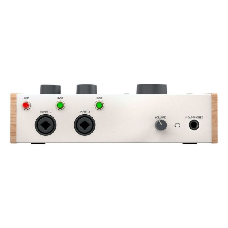 UA поставляют VOLT с продуманным комплектом софта: DAW Ableton Live Lite, Softube Marshall Plexi Classic Amp/Time & Tone Bundle, Celemony Melodyne Essential, Relab LX480 Essentials, Plugin Alliance Ampeg SVT-VR Classic/Brainworx bx_tuner/Brainworx bx_masterdesk Classic, UJAM Virtual Drummer DEEP/Virtual Bassist DANDY, Spitfire LABS. Этого набора плагинов достаточно, чтобы собрать демо-версию материала и сделать полноценную аранжировку.
