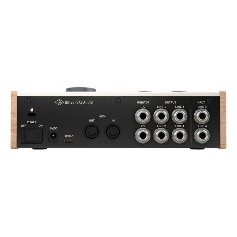 Интерфейс снабжен двумя комбинированными разъемами TRS/XLR, двумя линейными разъемами TRS, выходом на наушники, четырьмя линейными выходами TRS и MIDI-разъемами.