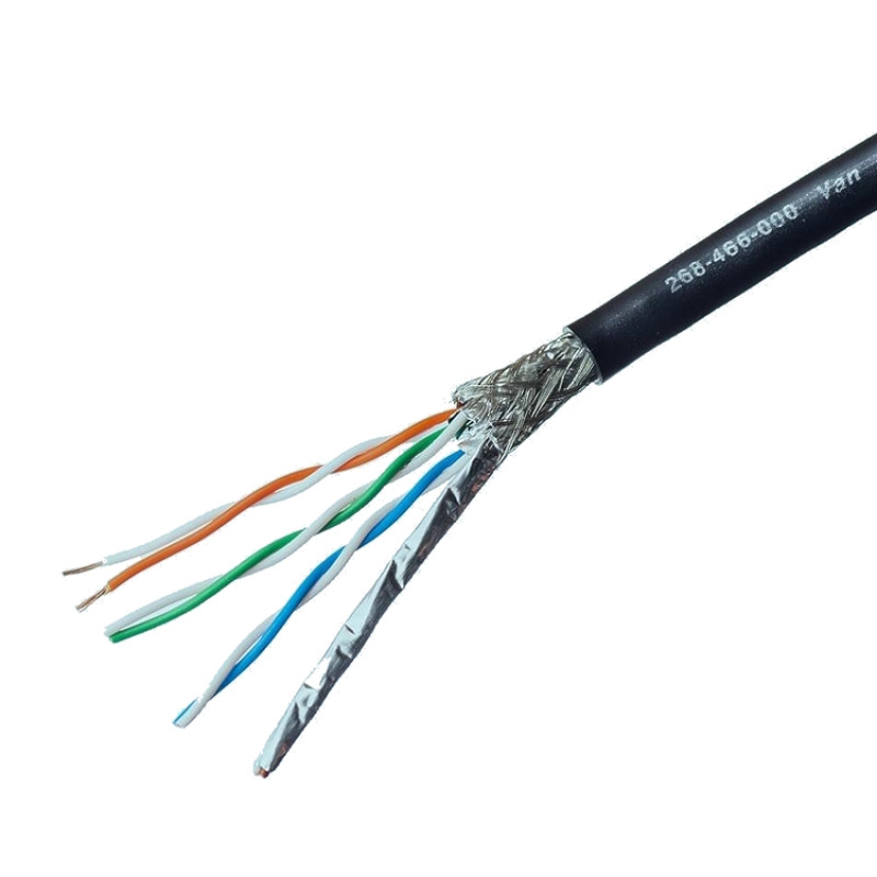 Van Damme TourCat Cat 6A Многожильный проводник S / FTP представляет собой гибкий провод с жилами из поливинилхлорида с 26AWG, с индивидуально экранированными парами и общим экранирующим покрытием шириной 75%.