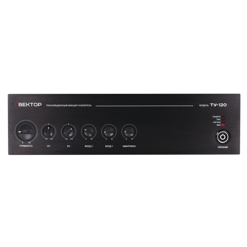 - 1 Универсальный (МикЛин) и 2 линейных входа с индивидуальной регулировкой громкости.