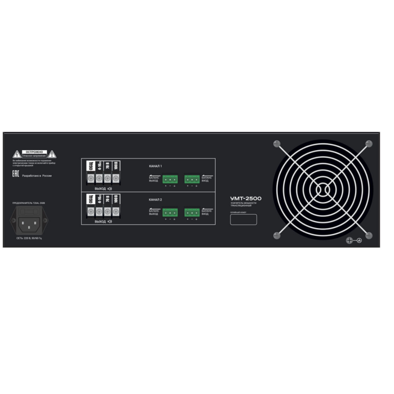 ВЕКТОР УМТ-2500 Вектор УМТ-2500 усилитель мощности 2х500Вт/100В,70В выход или 4-16 Ом. Линейные вход /выходы,(разъем тип Phoenix). Индикация режимов работы усилителя. Регулировка уровня выходного сигнала, регулировка НЧ\ВЧ, многоступенчатая защита. Питание 220-230В/50-60 Гц. Высота 3U. Вес 20 кг.