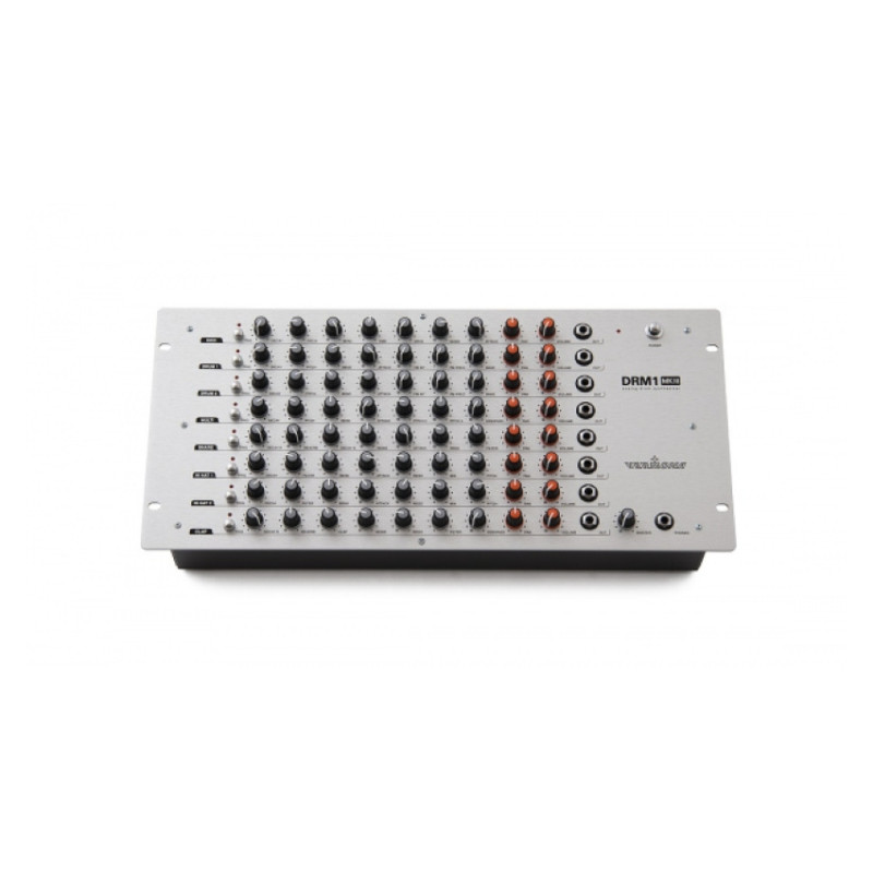 Данная модель является полностью аналоговой драм машиной с огромным функционалом. DRM1 MKIII обладает 8 каналами, которые генерируют звуки ударных, с возможностью регулирования Decay, Pitch, Bend, Attack, FM Int, Reso, Noise, Pan, Volume. Каждый звук имеет отдельный 1/4" Jack разъем, на задней панели располагаются 1/4" Jack разъемы, Output L/R, а также интерфейс Midi In/Out. Драм машина оснащена 73 регуляторами на передней панели, что позволяет детально настроить звучание. Данная модель поставляется в стандартной комплектации без CV/Gate разъемов.