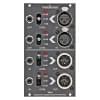 Верхняя часть модуля состоит из двух одинаковых каналов с балансными XLR разъемами в качестве входов и 3,5 мм в качестве выходов. Кулисные переключатели служат для регулировки уровней (0 дБ, 6 дБ, 12 дБ).