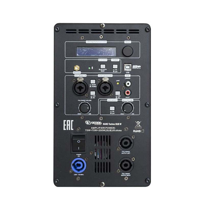 POWER 3 SUB 10 оснащается десятидюймовым динамиком мощностью 250 Вт (RMS), цифровым трёхканальным усилителем 75+75+200 Вт (в 8-омном режиме) и трёхканальным управляющим процессором с возможностью управления всеми основными параметрами системы. В конструкцию усилительной части сабвуфера входит Bluetooth-приёмник, позволяющий в случае необходимости воспроизводить сигнал с мобильных устройств.