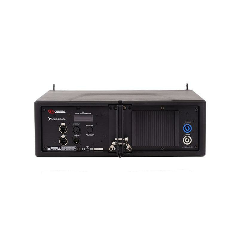 Широкополосные элементы линейного массива COLIBRI 206A предназначены для работы в камерных концертных залах, залах заседаний, спортивных и торговых комплексах. Высокое качество звукопередачи, большое звуковое давление и надежность — слагаемые успешной эксплуатации систем на различных объектах. В корпусе элементов линейного массива расположены независимый усилитель и модуль DSP. В усилителе мощности используется высокоэффективный импульсный источник питания. Встроенный модуль DSP позволяет настроить параметры усиления, кроссовера, эквалайзера, задержки, лимитера и т. д., а также предлагает другие функции. С помощью процессора DSP также возможно управление отдельными элементами линейного массива посредством сетевого интерфейса RS-485. Определенными функциями DSP можно управлять с панели, установленной на элементах линейного массива.