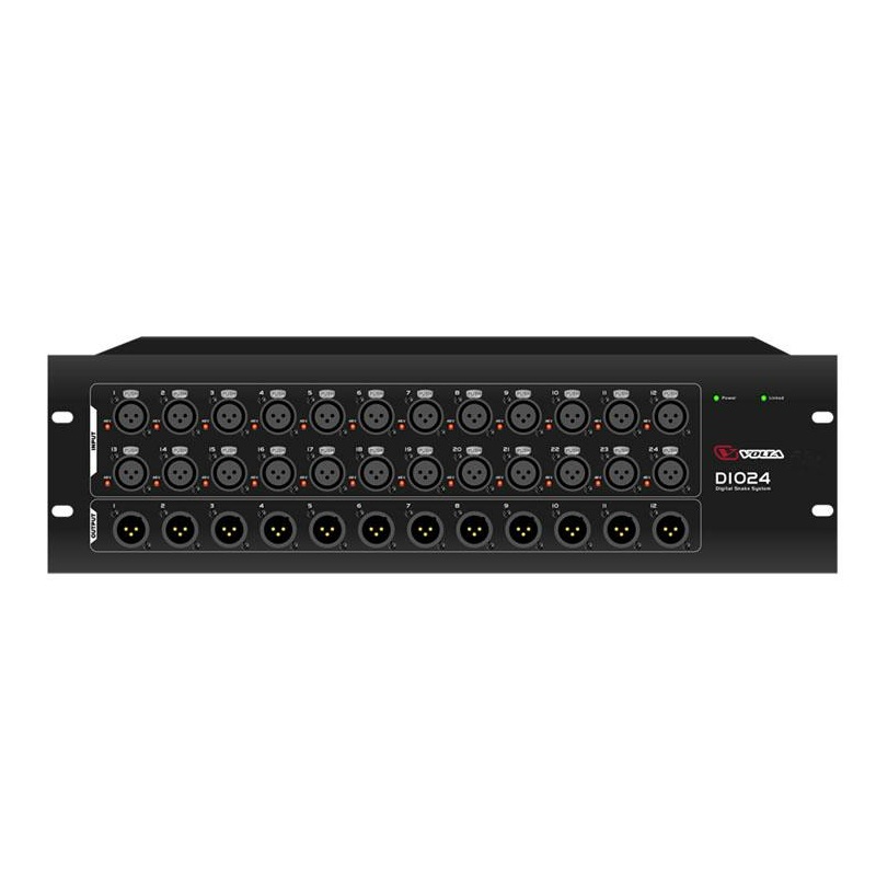 Новый Stage Box обладает 24 аналоговыми входами с микрофонными предусилителями с фантомным питанием и 12 выходными каналами. Внутри прибора расположены АЦП/ЦАП с динамикой – 91dBu/114dB с глубиной квантования 32 бит (процессор 32 бит с плавающей запятой).