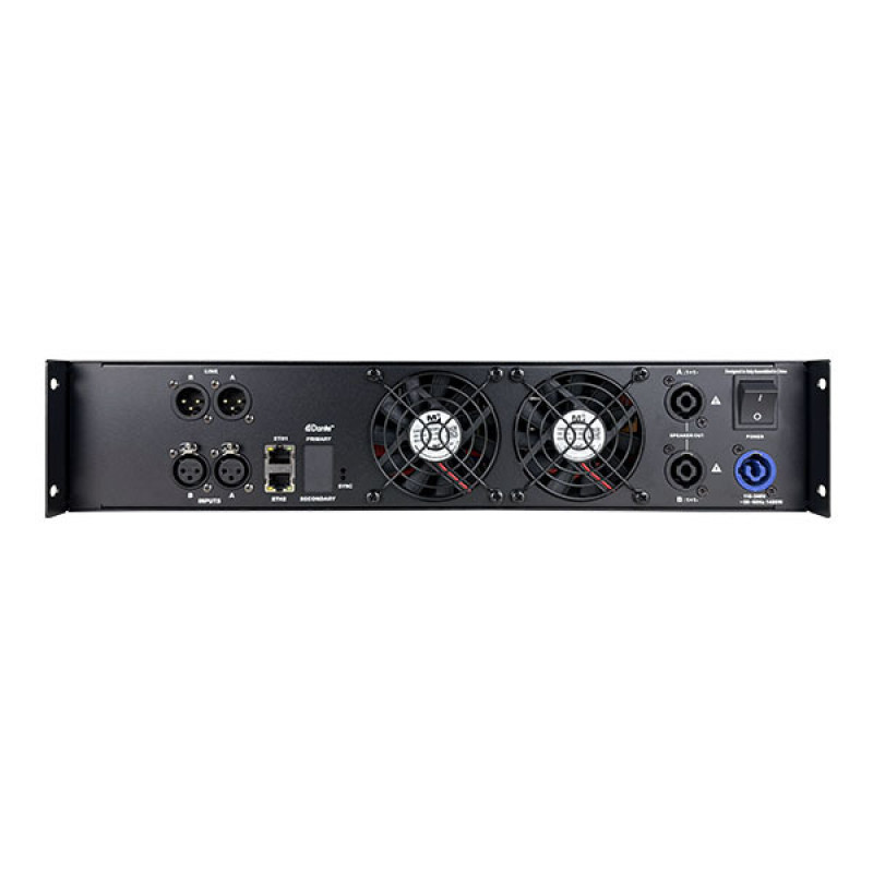 Аналоговые аудиовходы 2х XLR 3-pin; два аналоговых аудиовыхода для подключения акустики реализованы на разъемах SpeakON + есть еще два аналоговых выхода типа LINK, разъемы 2х XLR. Служебный порт USB-Type B. Все коннекторы, кроме USB, размещены на тыльной части корпуса. Усилитель оснащен защитой от перегрузки, перегрева, постоянного выходного тока и короткого замыкания. Питание ~ 220 В, за охлаждение отвечают два вентилятора с автоматически регулируемой скоростью. Габаритные размеры 482х88х370 мм; рэковый размер 2U, вес 8.5 кг.