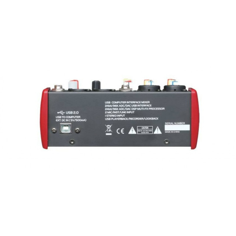 Микрофонно-инструментальные предусилители оснащены индивидуальными включателями фантомного питания, 2-полосным эквалайзером, регулятором стереопанорамы и посылом на встроенный процессор эффектов. FX-процессор имеет 24-битную разрядность, 16 заводских базовых алгоритмов и клавишу Tap Tempo.