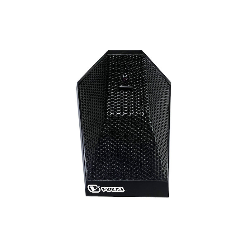 Прочный стальной корпус Вольта и нескользящие нижние накладки из силикона сводят к минимуму воздействие вибрации поверхности на микрофон. Низкопрофильный дизайн с черной отделкой с низким коэффициентом отражения для минимальной видимости является универсальным решением. Резьбовые вставки в нижней части микрофона позволяют крепить его с помощью винтов для повышения безопасности.