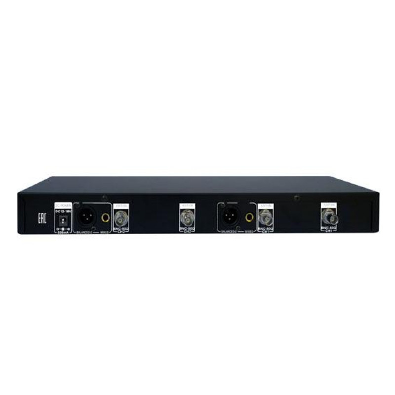 - Микрофонная 100-канальная радиосистема с 2 головными петличными конденсаторными микрофонами UHF диапазона. PLL-synthes, LCD-дисплей, True Diversity, 1 U 19" рэк.